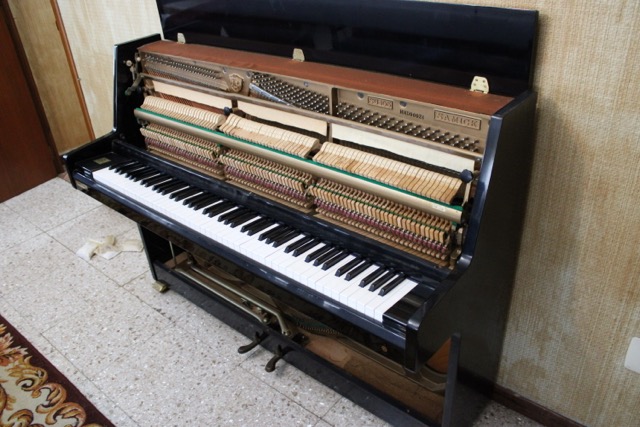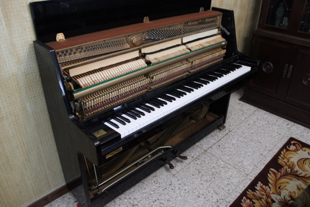 El instrumento está estructuralmente completo y la mecánica se encuentra íntegra. Requiere mantenimiento general, limpieza y afinación.